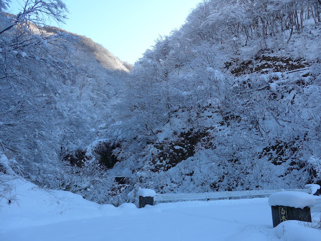 | 峠から奥大勘場山方面の林道は雪に閉ざされていた |
